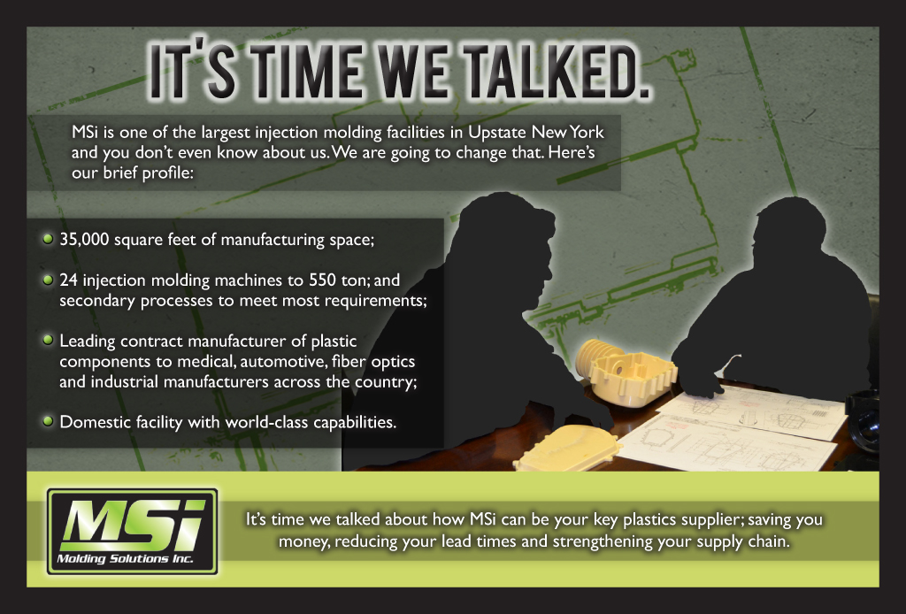 With those American standards at the core of our operation, MSI has grown to be one of the largest injection molding facilities in Upstate New York with an industry-wide reputation of delivering products at globally cost-effective prices -- with domestic supplier communication.